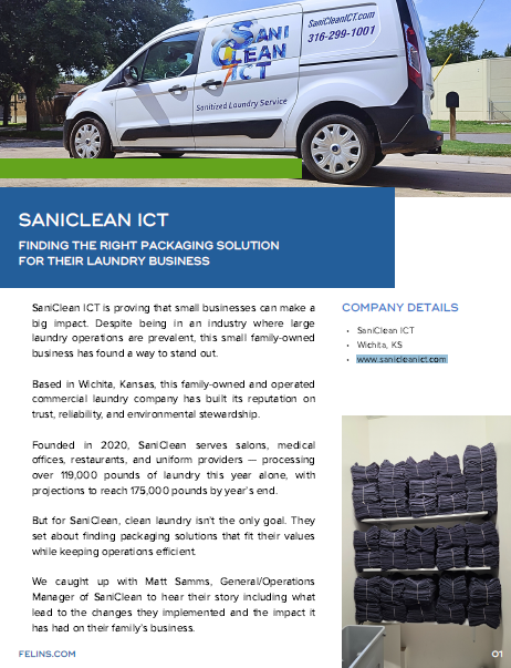 Matt first connected with Felins at the Clean Show in Atlanta. After learning about Felins’ PakTyer 2000, he quickly saw the potential for change. Instead of using plastic, the PakTyer uses twine to bundle laundry securely.
